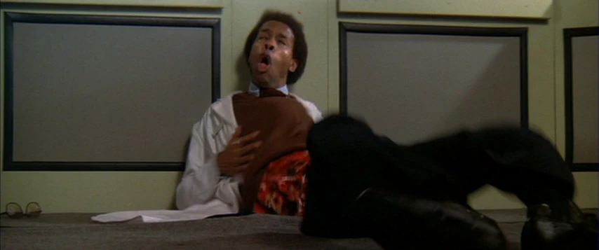 However, the elevator malfunctions and an elevator cable slices through the elevator; cutting Dr. Kayne in half and killing him.